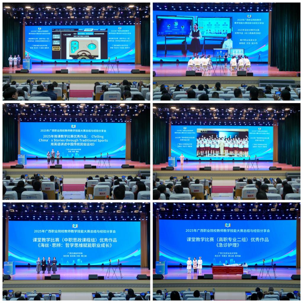 在经验分享环节,来自南宁职业技术大学、广西工业职业技术学院、广西右江民族商业学校、awc77万象城官网、广西交通技师学院、广西卫生职业技术学院的六支优秀教学团队,分别围绕混合式教学、微课设计、班主任工作、专业课程改革、思政课创新、急诊护理教学等主题,分享了他们的教学设计理念、技术融合路径与实践反思,为与会教师提供宝贵借鉴。