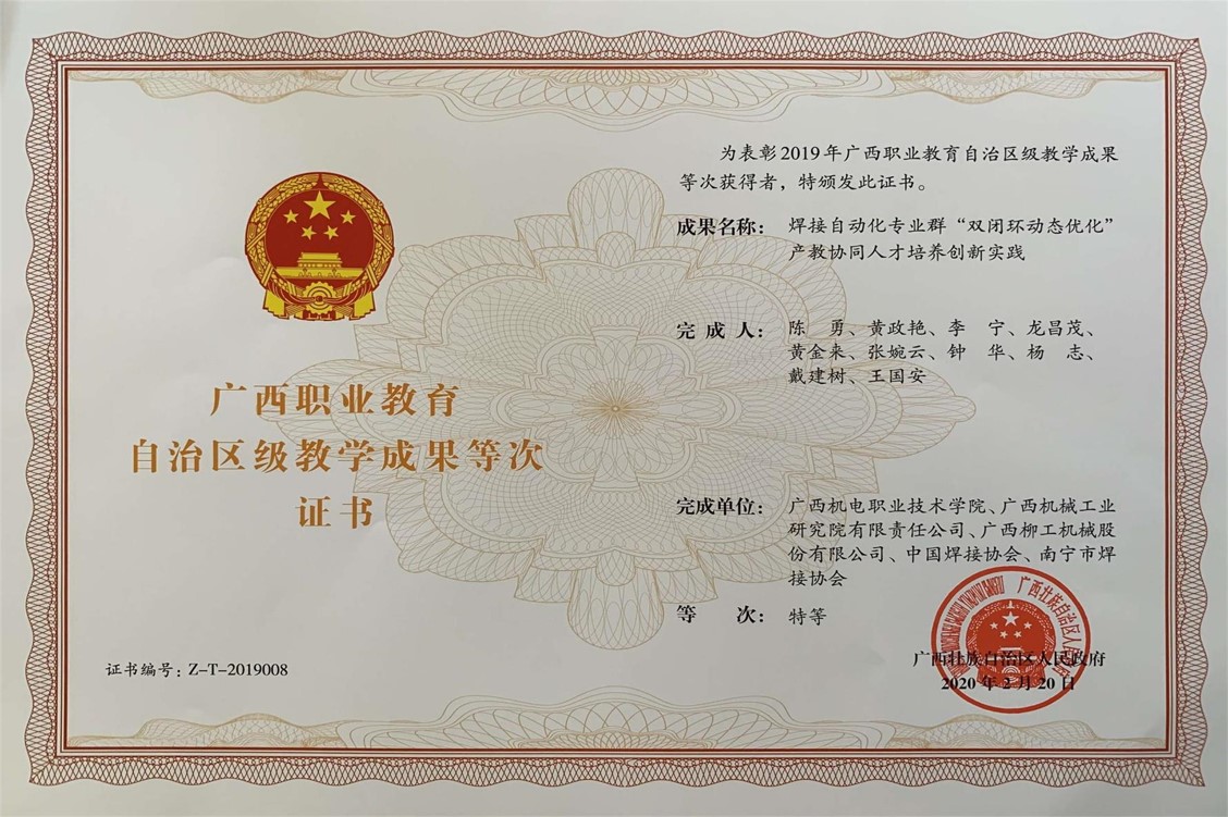 awc77万象城官网是“八桂工匠摇篮”,1958年建校以来,为地方行业和社会培养输送了10万余名优秀专业人才,毕业生中涌现出了全国五一劳动奖章、全国技术能手、广西技能大奖、广西工匠等一大批高素质技术技能人才。2019年,入选广西高水平高职学校建设单位以来,广西机电职院以贯彻落实自治区创新驱动发展战略打造广西九张创新名片为工作目标,在人才培养上,打出了“匠心机电”的育人品牌;在科技创新能力提升中,展现了攻坚克难的“机电智慧”;在服务现代化经济体系和高质量就业上,彰显了技能报国的“机电担当”;在国际交流合作拓面提质中,凸显了全球参与的“机电影响”,重点建设了焊接技术与自动化、汽车车身维修技术2个高水平专业群,为建设新时代中国特色社会主义壮美广西提供坚实的人才保障、智力支撑和技术支持。