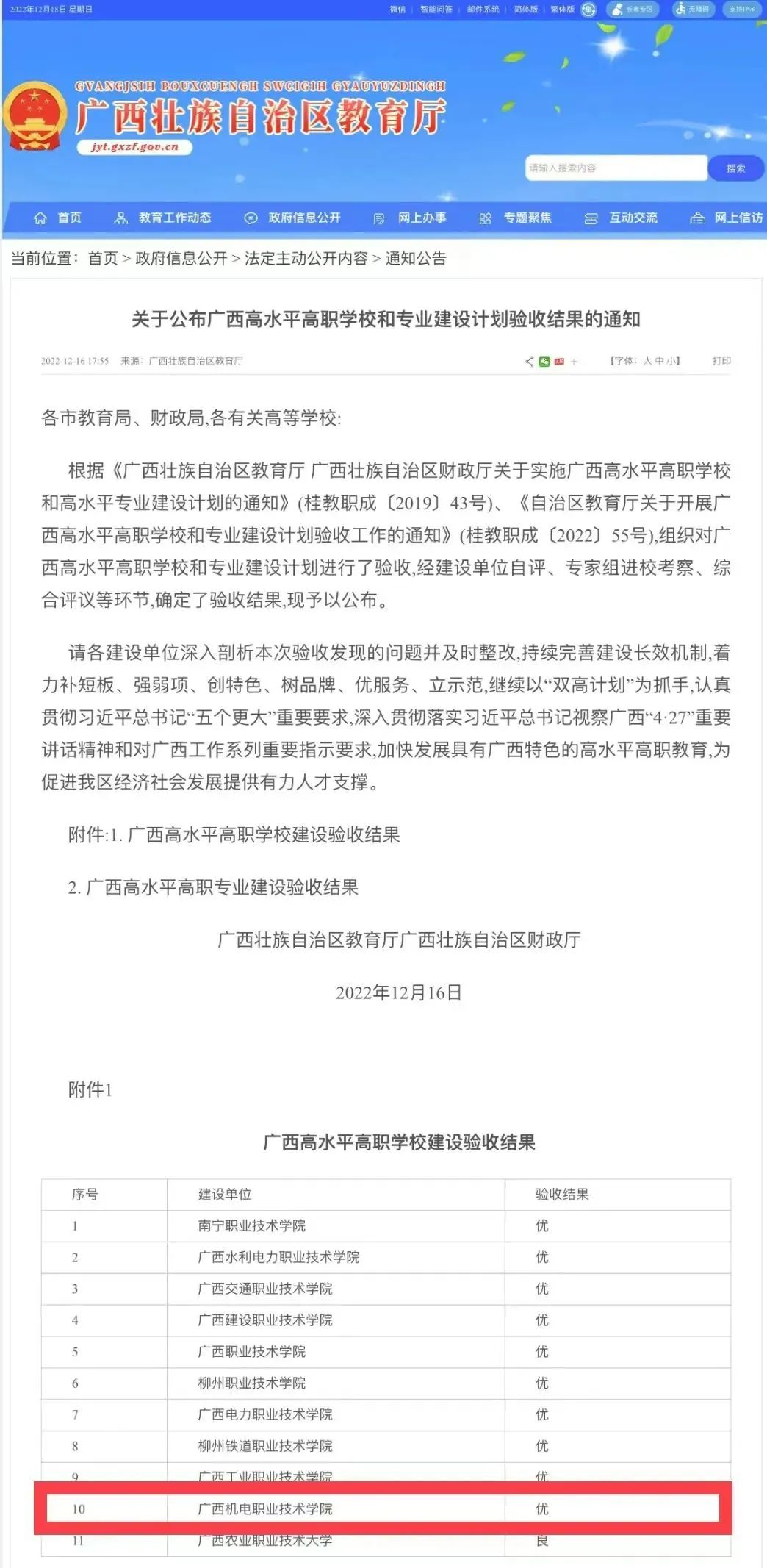 喜报!万象城官网顺利通过广西“双高计划”验收并获优秀等次