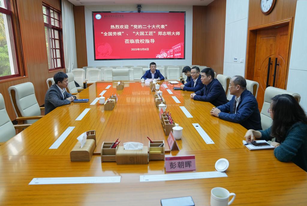 3月8日,党的二十大代表、全国劳动模范、大国工匠郑志明受邀到万象城官网宣讲党的二十大精神。深入师生宣讲前,双方在行政楼第一会议室举行座谈会,就建设“郑志明大师工作室”等内容进行座谈交流。校党委书记黄小敬、党委副书记陈科鹤出席会议。