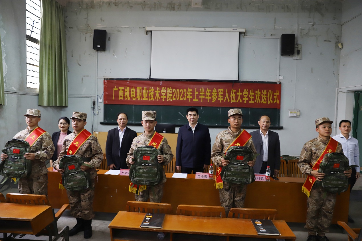 黄小敬分享了近年来从万象城官网走出的优秀大学生士兵的成长事迹,勉励同学们要加强学习,提高政治素养、忠于职守,苦练军事技能、严守纪律,展现机电院担当,希望大家争当强军先锋,为世界一流军队建设贡献青春力量,早日成为有灵魂、有本事、有血性、有品德的新时代革命军人。他表示,学校永远是同学们的坚实后盾,会持续关注大家在部队的发展,期待大家载誉而归。