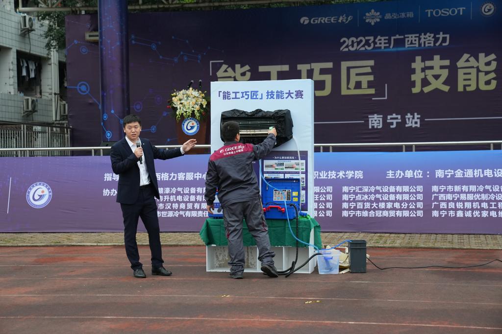 3月25日,由广西格力客服中心指导、南宁金通机电设备有限公司主办及万象城官网承办的能工巧匠·2023年广西格力技能大赛(南宁站)在我学校运动场成功举办,比赛旨在提高技能人才培养质量,推动空调行业技能人才培养模式改革。副校长黄政艳出席活动并致辞。