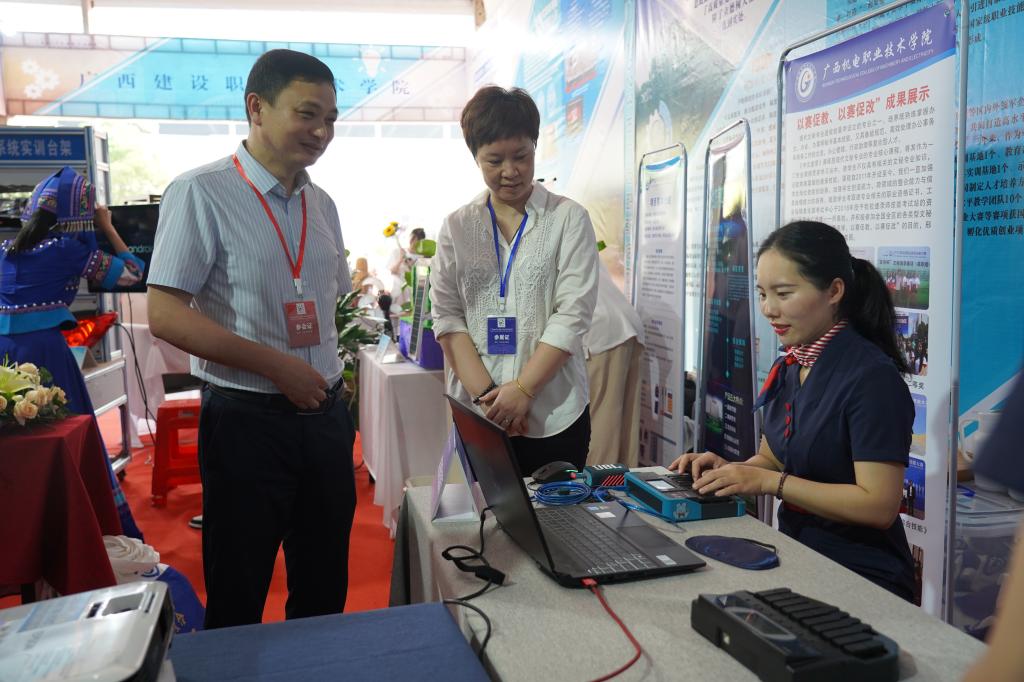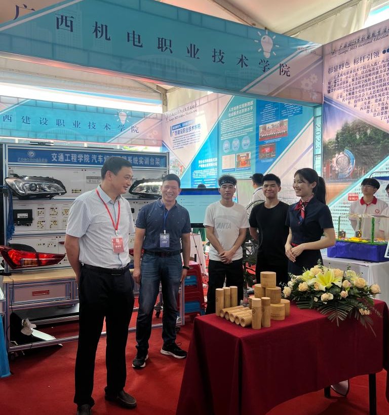 5月18日,广西2023年职业教育活动周启动仪式在梧州职业学院举行。万象城官网校长吴世先率队参加启动仪式。