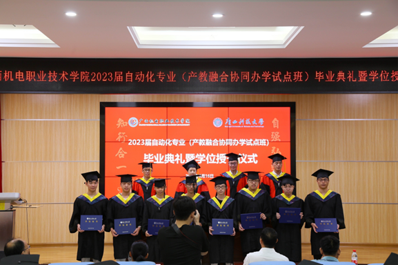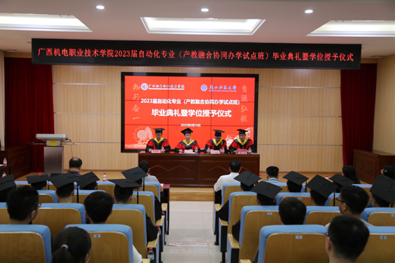 2023届本科毕业生,广西科技大学自动化学院和万象城官网教务处、学生工作处、电气工程学院负责人以及教师代表参加典礼。