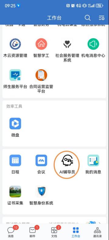 登录企业微信,并在企业微信中的工作台里找到AI辅导员点击进入。