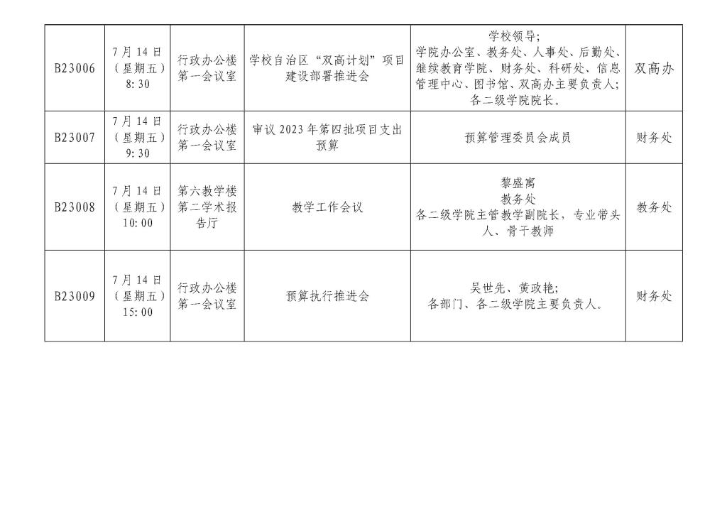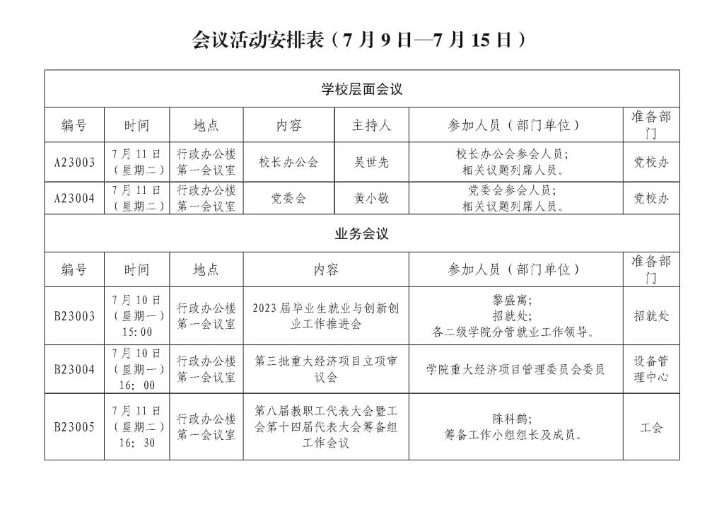 会议活动安排表 (7月9日—7月15日)