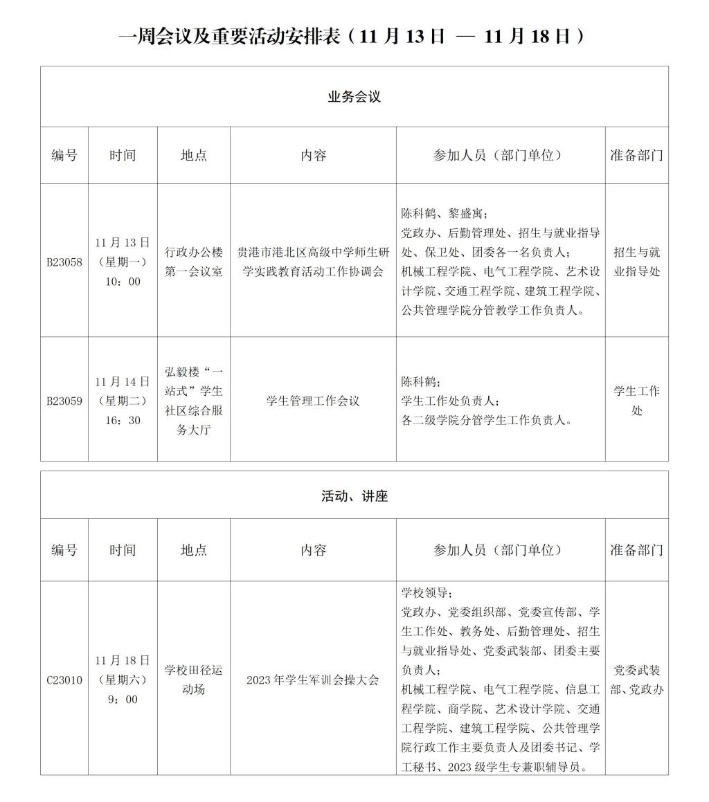 一周会议及重要活动安排表(11月13日 — 11月18日)