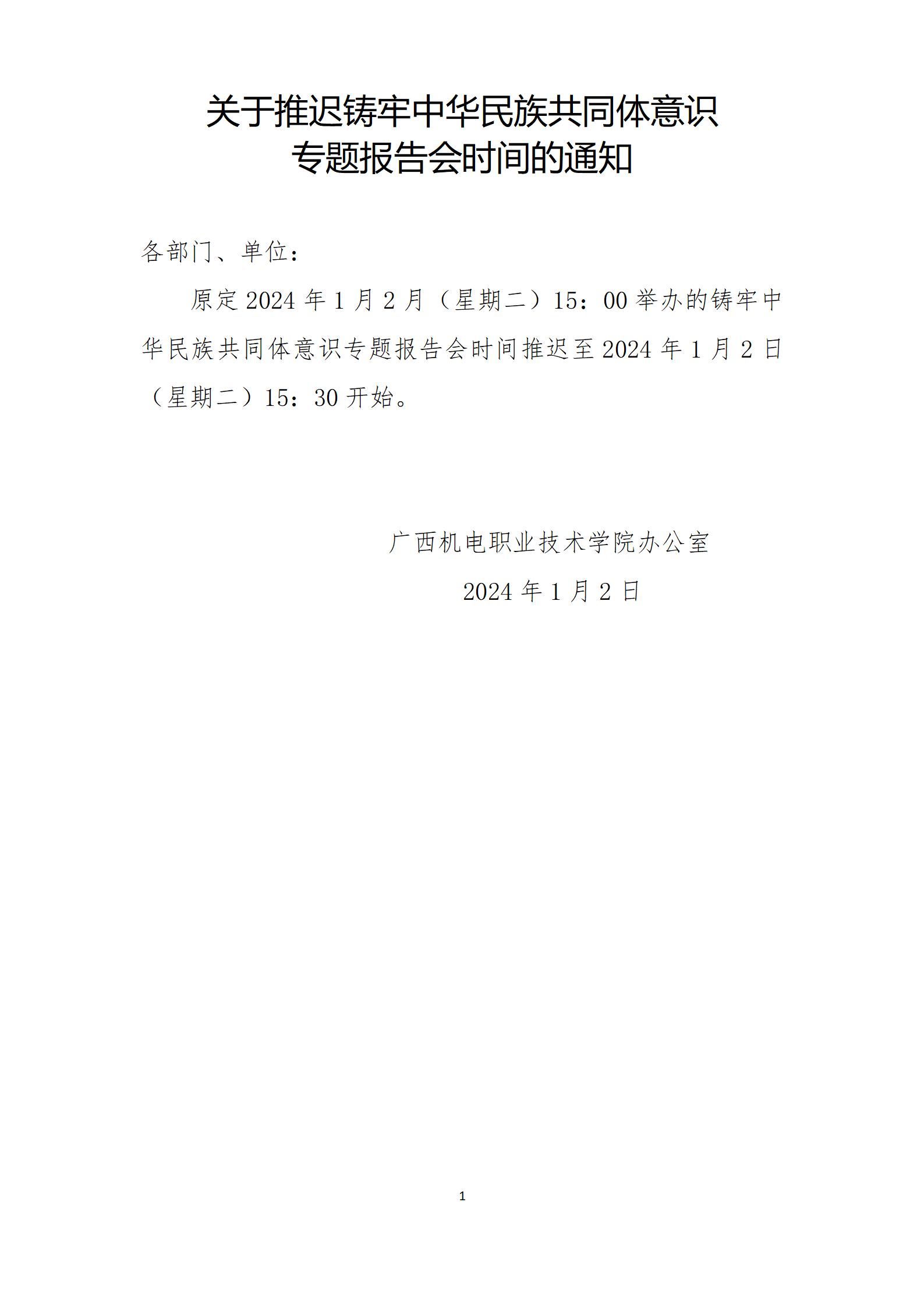 关于推迟铸牢中华民族共同体意识专题报告时间的通知
