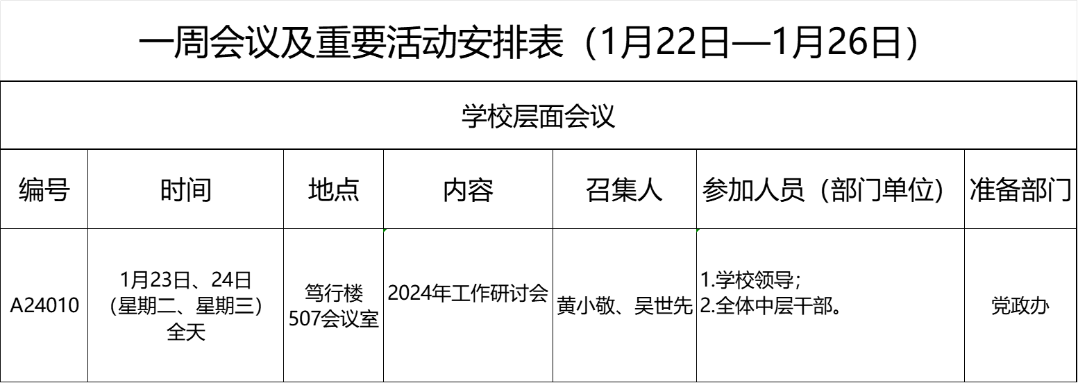 一周会议及重要活动安排表(1月22日—1月26日)