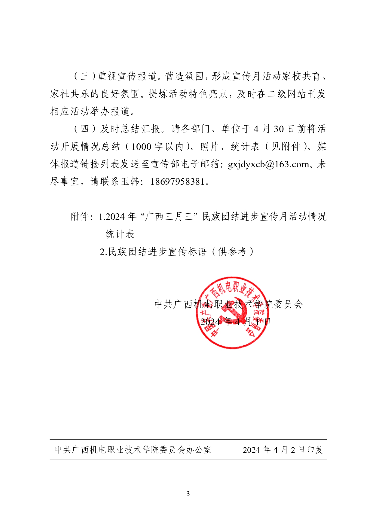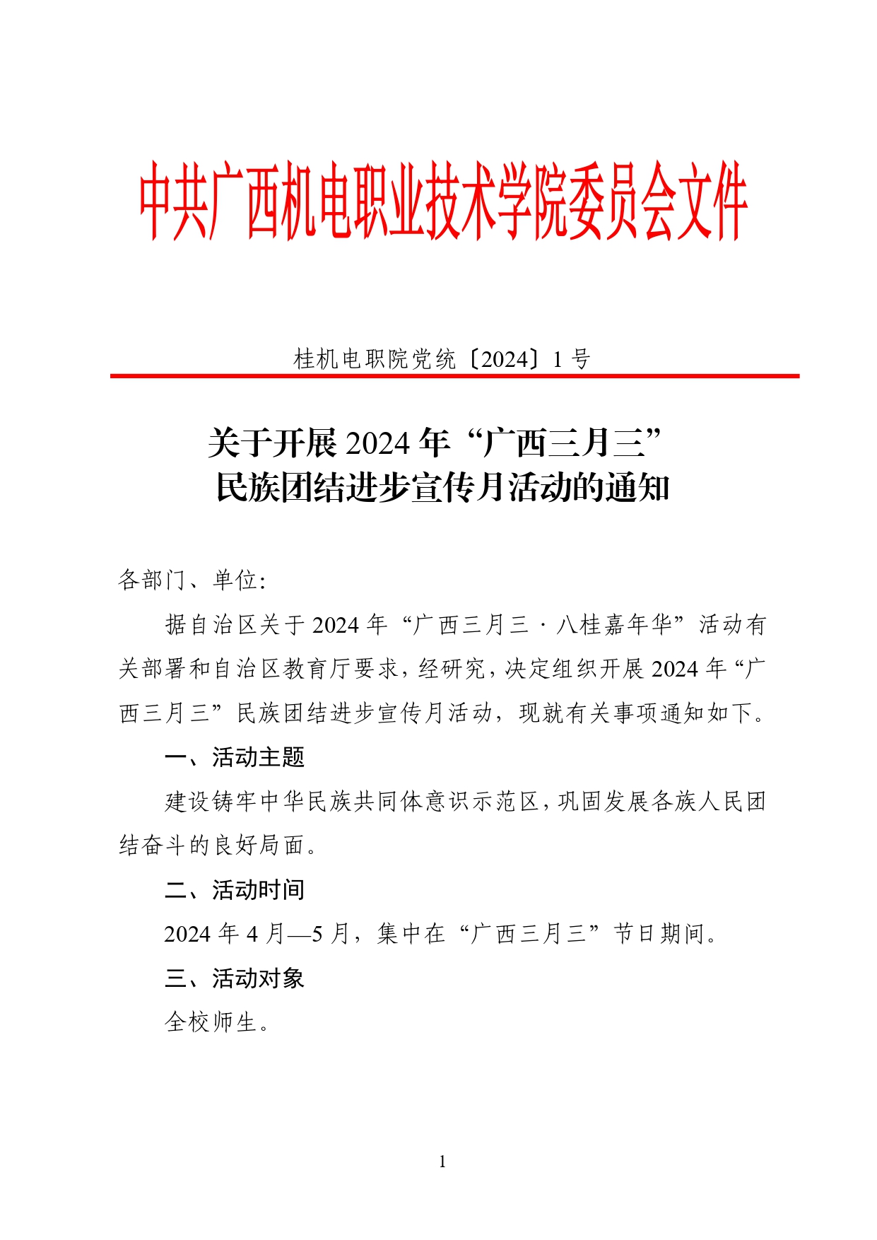 关于开展 2024年“广西三月三”民族团结进步宣传月活动的通知
