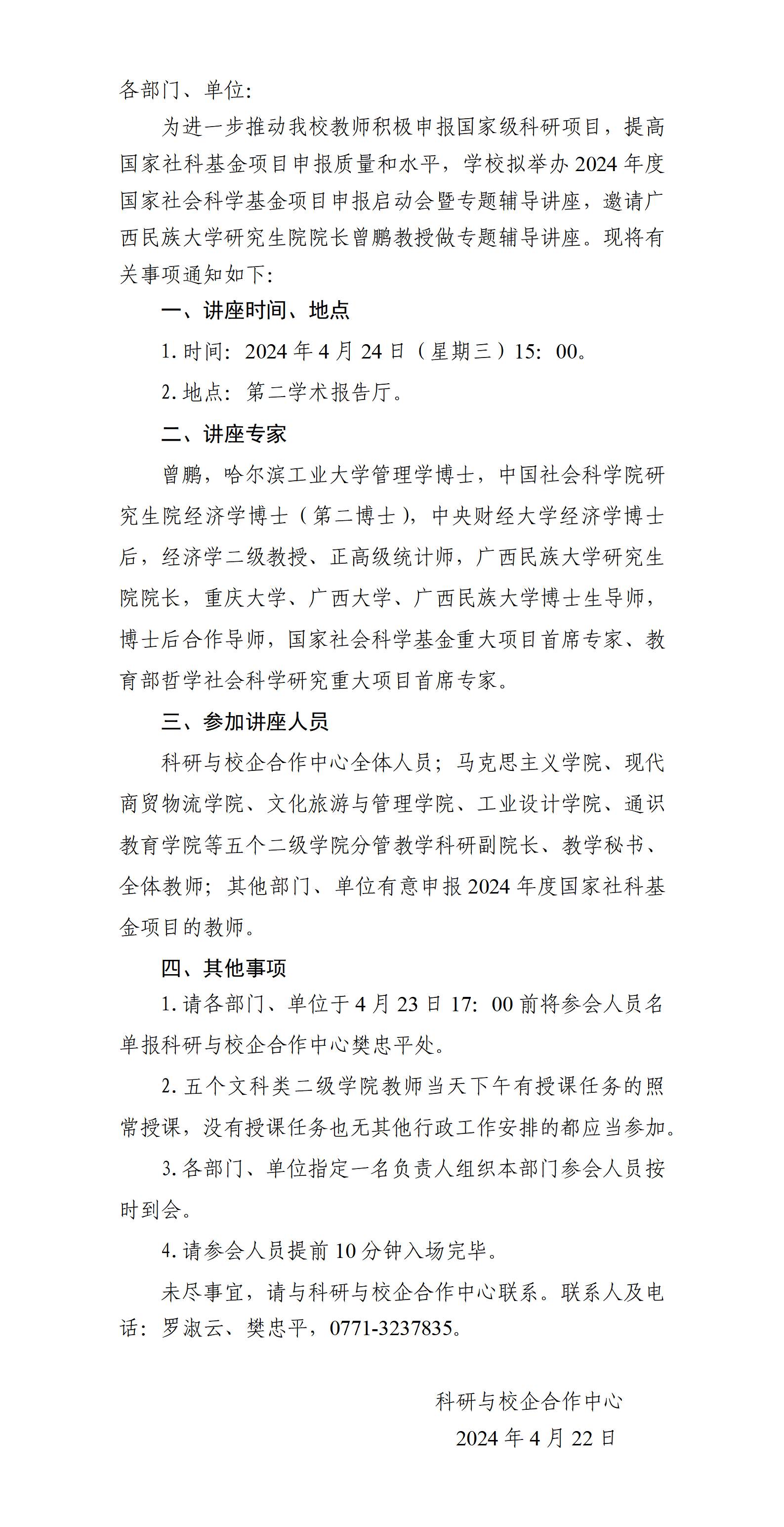 关于举办2024年度国家社会科学基金申报启动会暨专题辅导讲座的通知