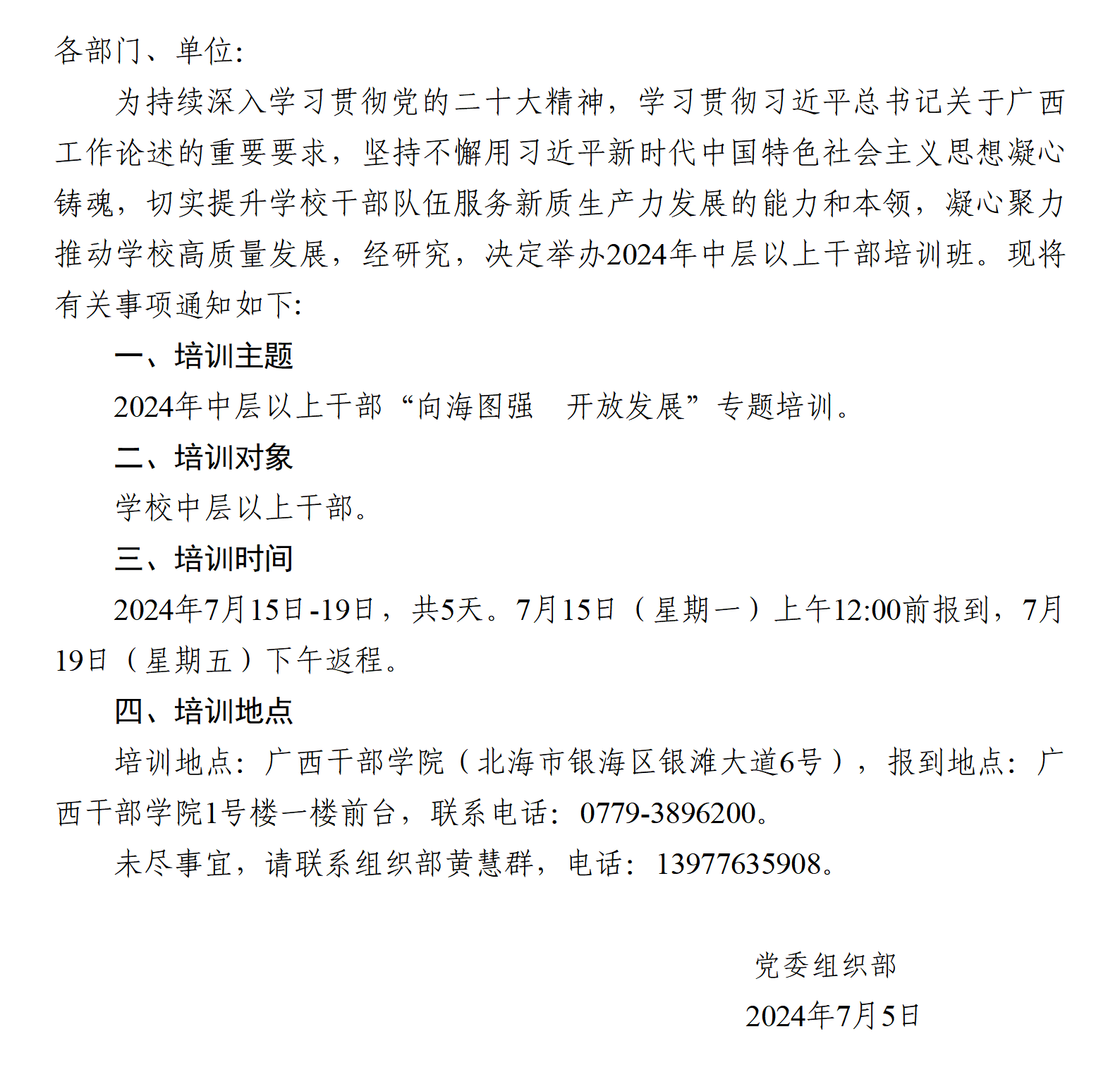 关于举办2024年中层以上干部 “向海图强 开放发展”专题培训班的通知