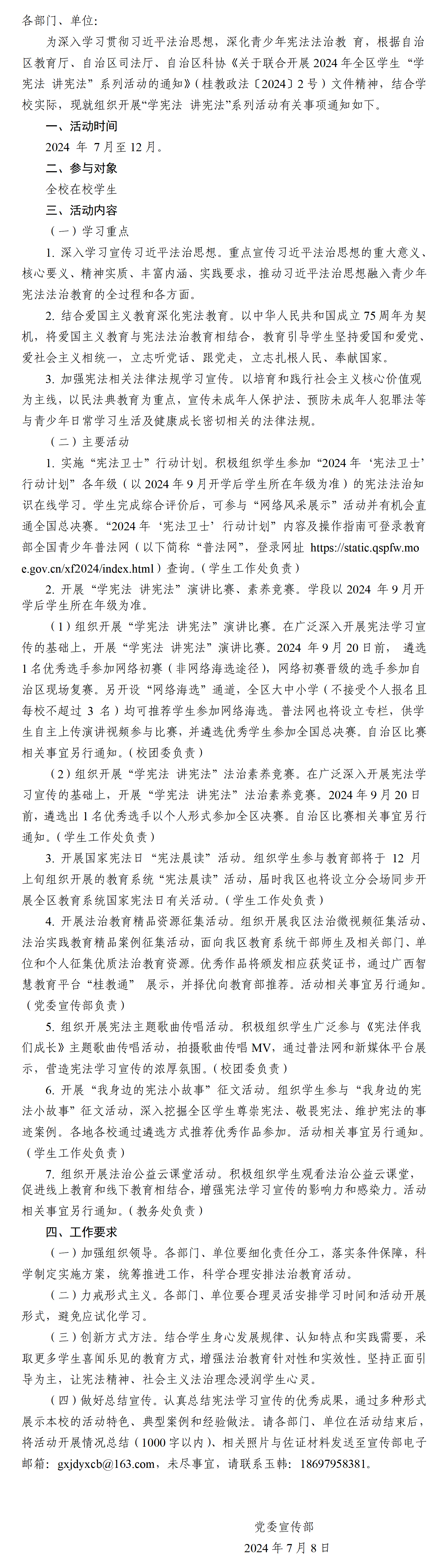 关于开展2024年“学宪法 讲宪法”系列活动的通知