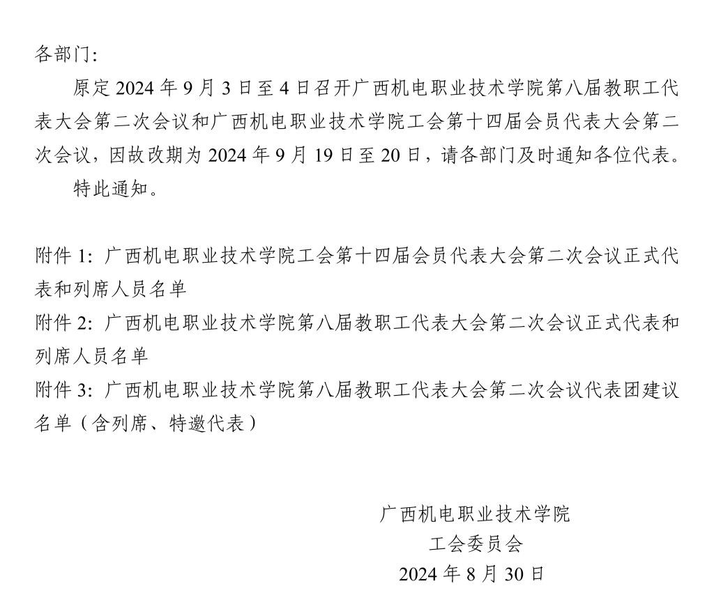 关于awc77万象城官网第八届教职工代表大会第二次会议和awc77万象城官网工会第十四届会员代表大会第二次会议改期召开的通知