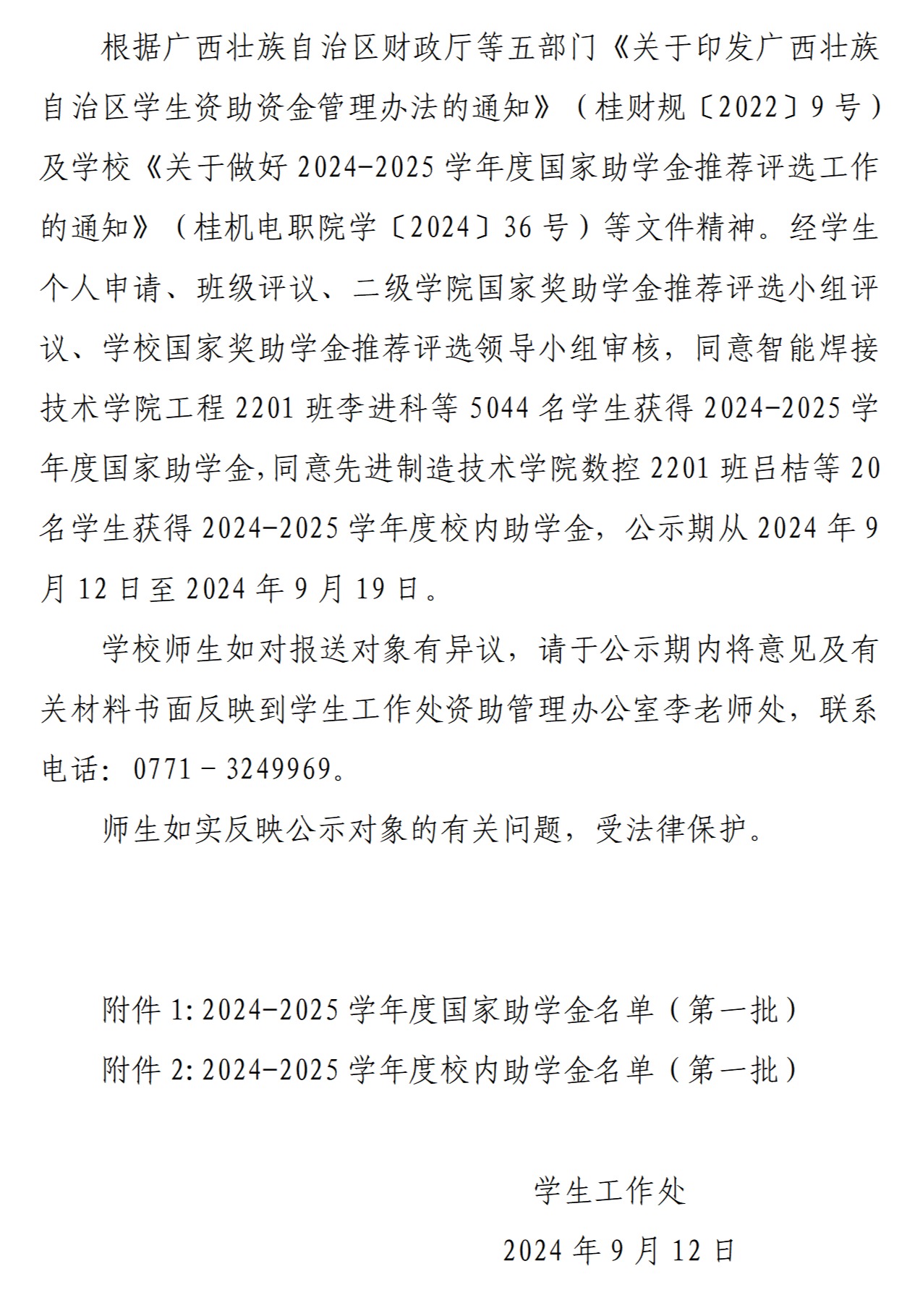 awc77万象城官网2024-2025学年度国家助学金(第一批)、校内助学金(第一批) 名单公示