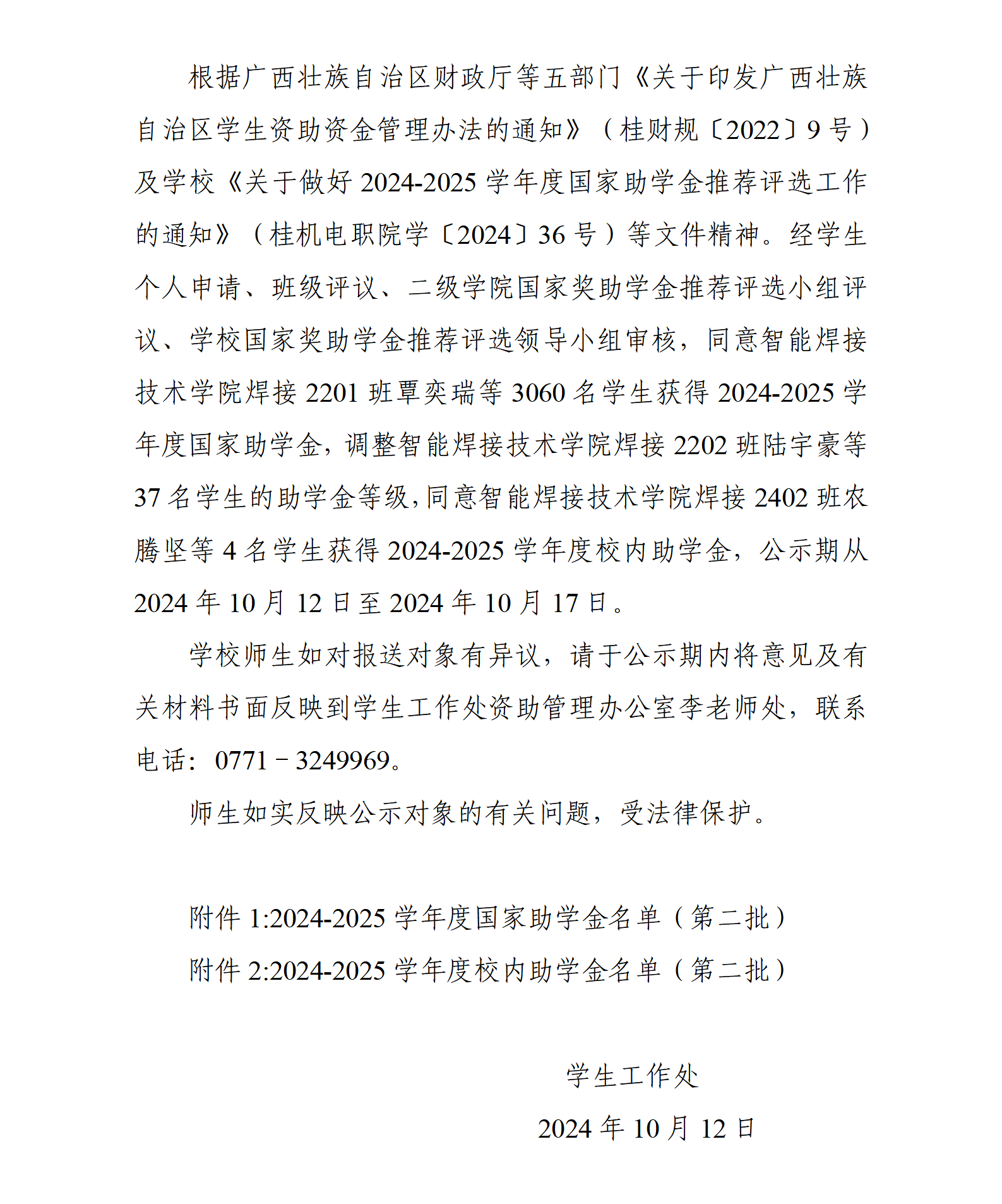 awc77万象城官网2024-2025学年度国家助学金(第二批)、校内助学金(第二批) 名单公示