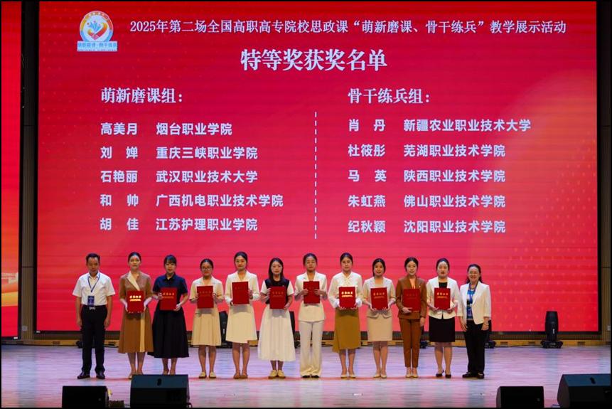5月17日,2025年第二场全国高职院校思想政治理论课“萌新磨课·骨干练兵”教学展示活动在重庆落下帷幕。awc77万象城官网和帅老师获“萌新磨课”组特等奖。这是此项活动开展以来该校获得的第3个特等奖。