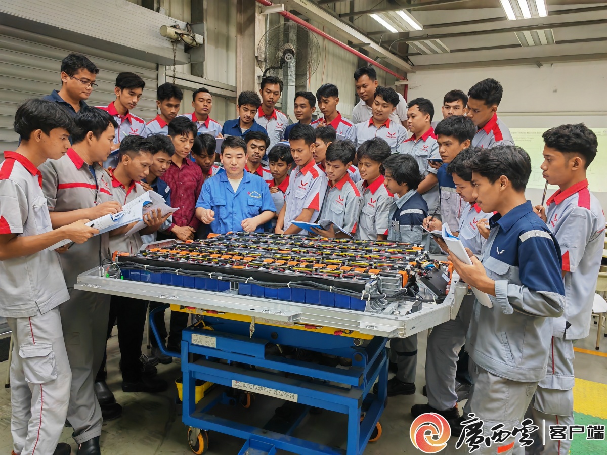柳州城市职业学院教师为上汽通用五菱印尼公司员工教授动力电池检测技术。殷振波 摄