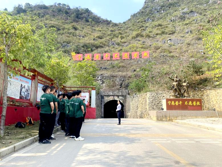 当天,awc77万象城官网组织师生团队赴天等县立屯事迹纪念馆开展现场教学活动。在教师引领下,同学们深入了解当地村民历经24年在石山上凿通出山隧道的广西版“红旗渠故事”。从立屯村民几代人“宁愿苦干,不愿苦熬”的精神品质中,大家深刻感悟到艰苦奋斗的深刻意义与当代价值。