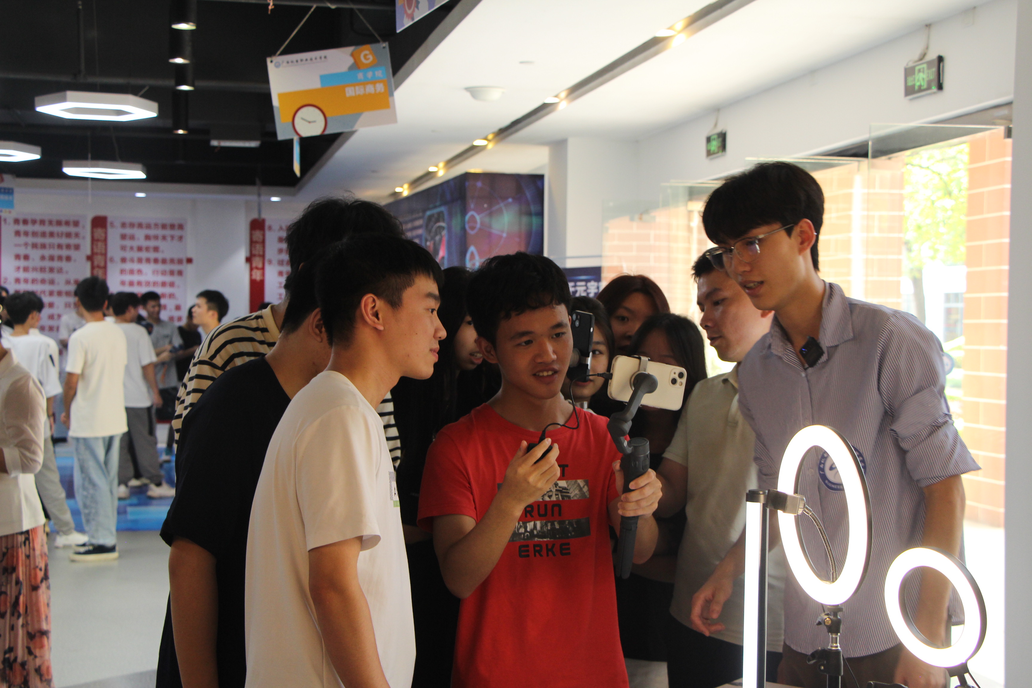 在校学生纷纷前来体验操作拍摄设备。学校供图