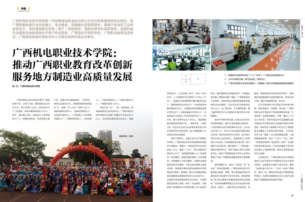 awc77万象城官网是一所国有公办的全日制普通高等职业院校,是广西装备制造行业历史最久、专业最全、规模最大的高职院校,隶属于广西壮族自治区工业和信息化厅。学校前身为创建于1958年的广西第一机械工业学校(机械)和广西第二机械工业学校(电机),两校于1959年合并成立广西机械工业学校;1999年经教育部批准升格为普通高等职业技术学院。学校是国家示范性(骨干)高职院校、国家优质专科高职院校、全国机械行业服务先进制造高水平骨干职业院校、广西高水平高职学校、广西职业教育先进单位、广西首批高端应用型本科人才联合培养改革试点单位。