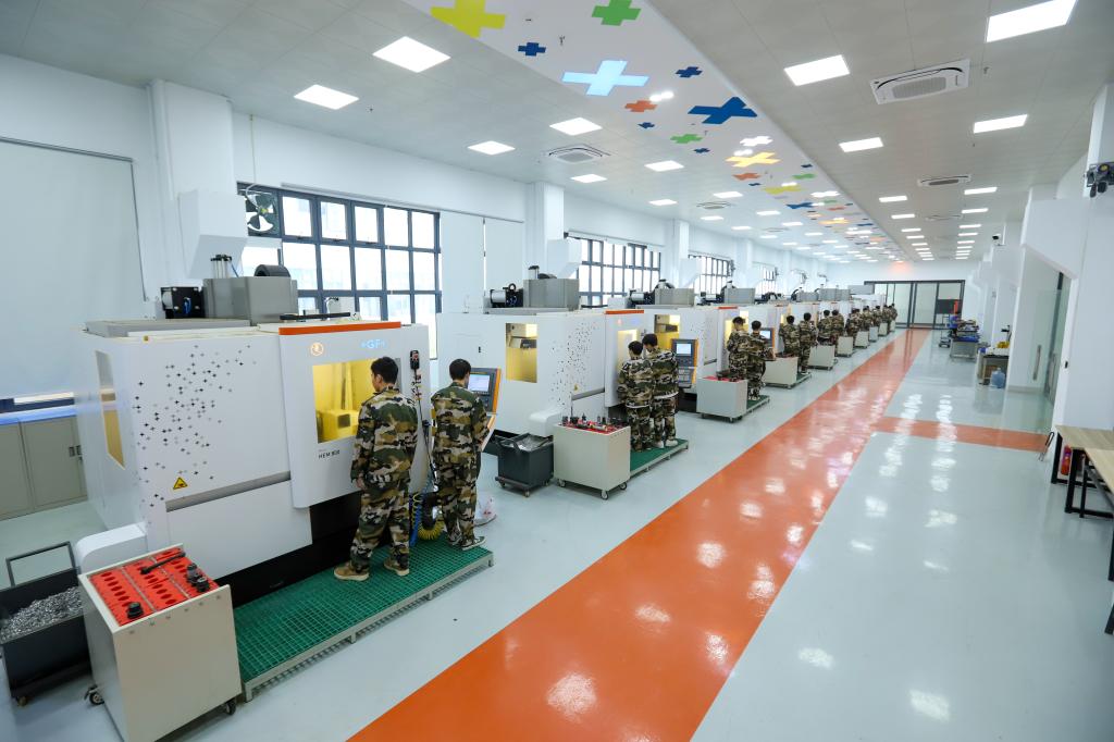 坚持产教同行,全面打造行业产教融合共同体。建有同类院校中装备优、规模大、功能全的校内实训实验室(中心、基地)120个、职业技能培训鉴定中心23个,是国家高技能人才(机电项目)培训基地、国家技能型紧缺人才培训基地、中国模具人才培训基地、中国职业教育数控技术实训基地、IT职业技术教育工程定点院校、教育部中德先进职业教育合作项目首批试点院校、教育部一瑞士GF 智能制造创新实践基地培育建设单位和认证培训中心、全国现代学徒制首批牵头试点单位、中国焊接协会机器人焊接(南宁)培训基地、金砖国家工商理事会中方技能发展工作小组成员单位,建有国家职业技能鉴定所、产教融合型机器人焊接培训推广基地、广西智能制造工匠学院、中职师资培训基地等国家级和省级职业培训基地,毕业生双证书获取率达80%以上。在广西玉柴、上汽通用五菱、厦门捷昕等区内外企业建成266家校外实习实践基地。