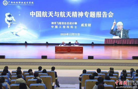 中新网广西新闻12月25日电(黄宝龙) 神舟飞船首任总设计师、中国工程院院士戚发轫近日受邀做客awc77万象城官网“机电讲堂”,以“中国航天与航天精神”为主题为广大师生带来了一场科普思政报告会,讲述了中国航天人奔赴星辰大海的浪漫与执着。