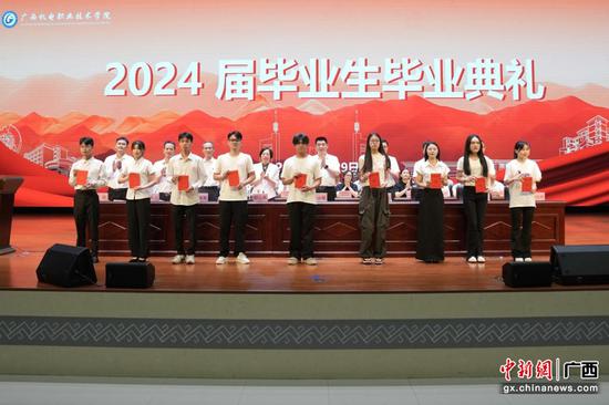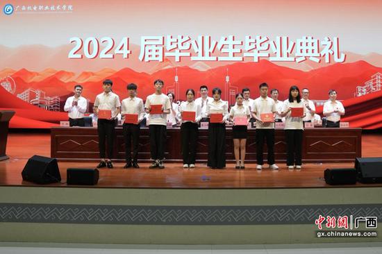 该校本届共有11416名学生毕业,其中,120名学生获评广西壮族自治区优秀毕业生,863名学生获评学校优秀毕业生。与会嘉宾为优秀毕业生和毕业生代表颁发荣誉证书和毕业证书。