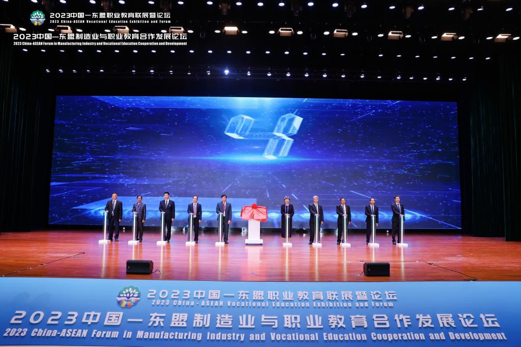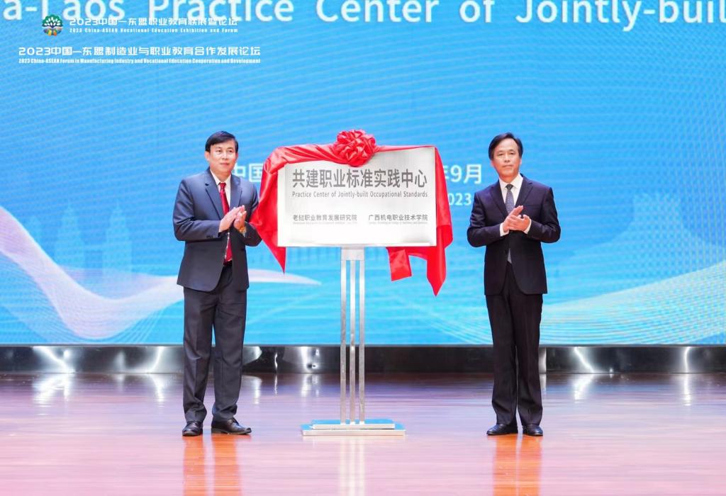 在论坛开幕式上,还举行了中国—老挝职业标准认证证书颁发及授牌仪式和中国—东盟高端装备制造职业教育集团成立仪式。