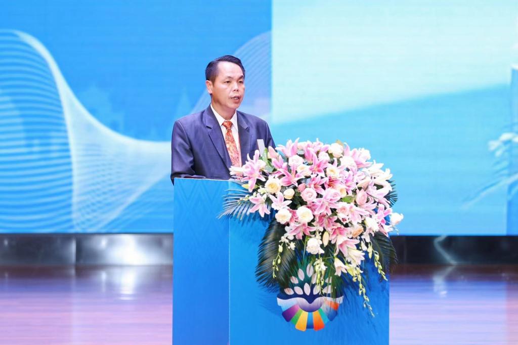 中国机械联合会党委常委、全国机械职业教育教学指导委员会主任委员于清笈、自治区教育厅组成员教育厅党组成员蔡春、自治区工业和信息化厅副厅长索申敬和学校党委书记黄小敬分别在开幕式上致辞,老挝教育体育部职教司副司长通萨•因达冯作为东盟国家代表致辞。