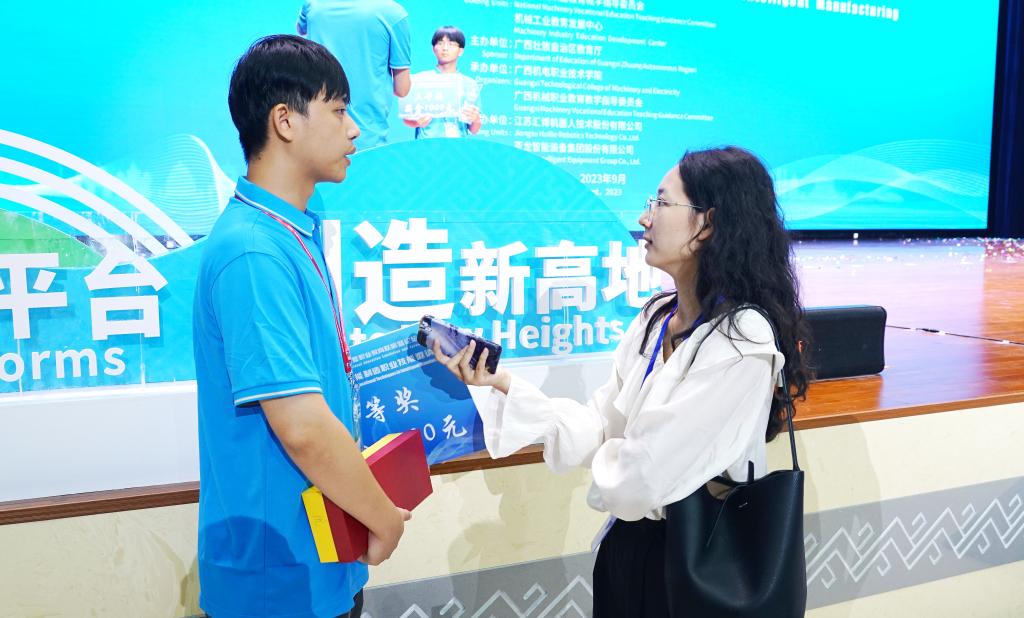 9月16日下午,2023中国-东盟智能制造职业技能邀请赛圆满闭幕。来自awc77万象城官网的黄安帅、林文志,柳州职业技术学院潘定刚,广西生态工程职业技术学院杨智翔等四名选手以精湛的操作技能和创新思维赢得了评委的赞赏,荣获比赛一等奖。闭幕式结束后,四名获奖选手向我们分享了他们备赛、参赛的心得体会以及未来的发展规划。