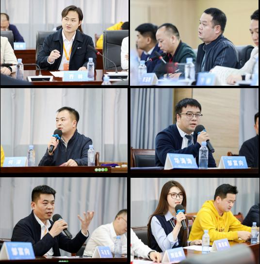 桂林电子科技大学教授、硕士生导师莫愁,东莞市裕昊纺织有限公司、常熟市永昊针纺织有限公司、苏州桂泰纺织科技有限公司董事长覃应安,广西桂物金岸制冷空调技术有限责任公司副总经理马志荣,广西鑫广达长久汽车销售服务有限公司总经理何深,全国五一劳动奖章和广西五一劳动奖章获得者、广西工匠、广西技术能手、广西柳工机械股份有限公司-技能培训高级专员(特级技师)韩权,广西交投集团梧州新港铁路投资有限公司副总经理刘达炬,全国技术能手、广西南南铝加工有限公司经理助理、航空航天零部件加工项目技术负责人齐林,广西创林广告传媒有限公司总经理邹富向,十四届全国人大代表,十四届广西人大代表、全国技术能手、广西技术能手、全国五一劳动奖章和广西五一劳动奖章获得者李海桦,玉林市中洋机电设备有限公司总经理卢渝,柬埔寨柳工工程机械总代理、华商产业投资有限公司董事长、柬埔寨华人商会会长黄继鹏,桂林华夏浩瀚信息技术有限公司、桂林浩瀚餐饮有限公司、桂林华夏聚鑫生物科技有限公司总经理华涛涛,广西再生铝协会副会长、百色市青年企业家协会副会长、广西千翊科技有限责任公司董事长覃海远,知名自媒体人、广西非遗文化的推广者“阿靖zi”黄思靖等校友围绕学校高质量发展先后发言,从加强校企合作、促进产教融合、创新订单班模式、参与技术攻关、加大课程改革力度、非遗文化传承进校园等多个方面为母校建言献策。