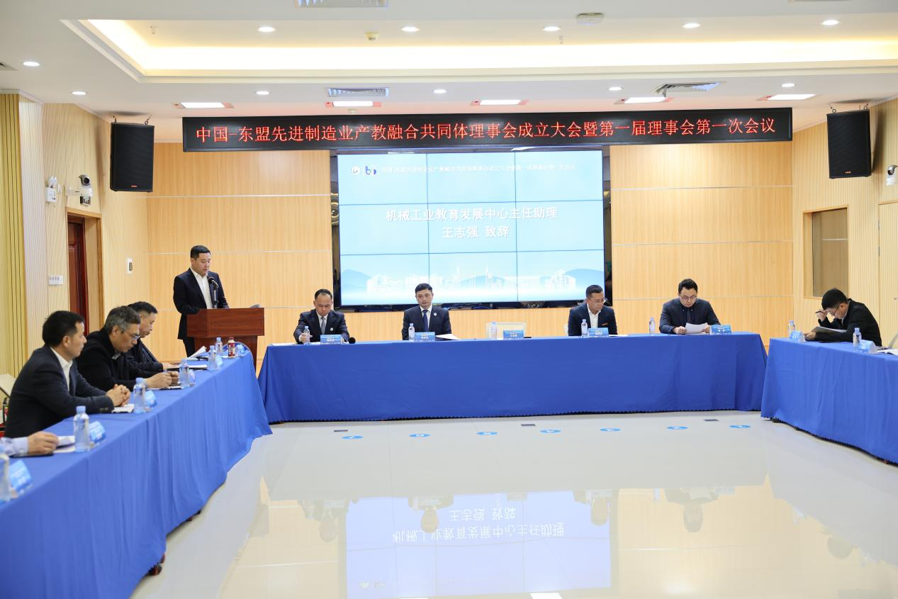 12月8日,中国-东盟先进制造业产教融合共同体理事会成立大会暨第一届理事会第一次会议在万象城官网博远楼第二报告厅成功召开。机械工业教育发展中心主任助理王志强,广西柳工机械股份有限公司智能制造研究总院院长侯国清,学校党委副书记、校长吴世先,北京工业大学博士、教授袁涛出席会议。大会由学校副校长黄政艳主持。来自大中专院校、行业企业的22家共建单位代表参加大会,共同见证中国-东盟先进制造业产教融合共同体理事会成立。