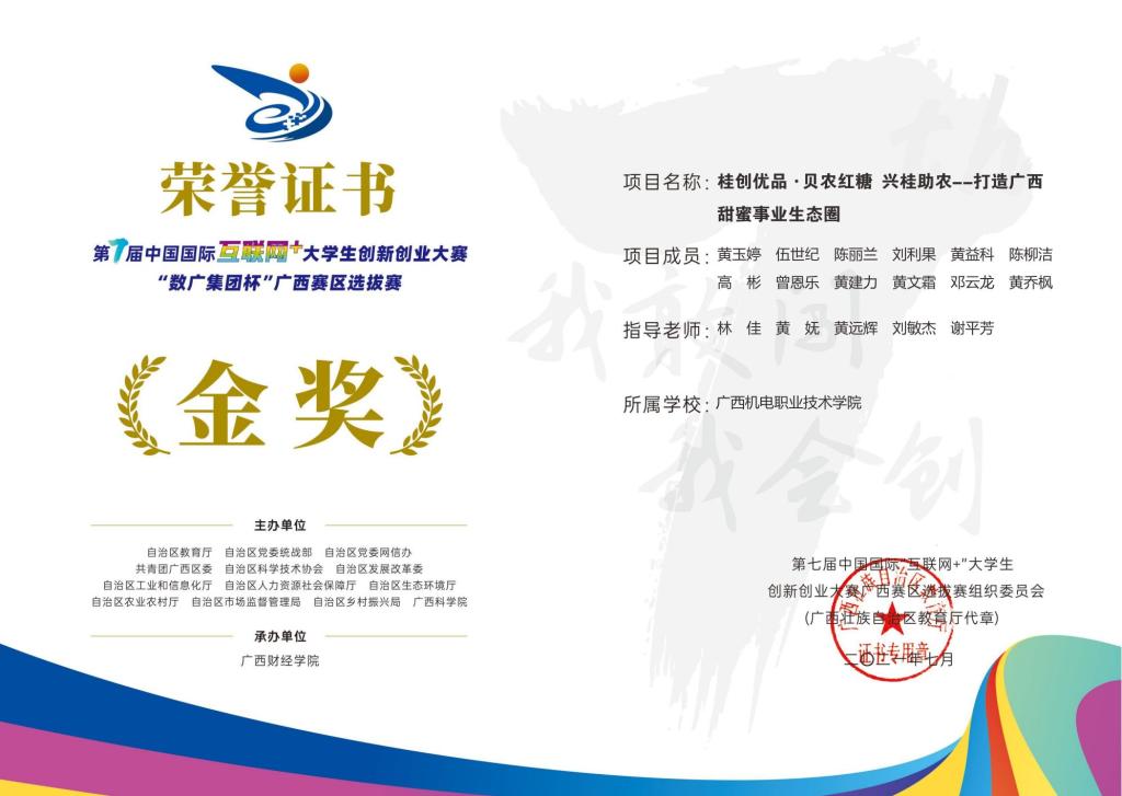 中国国际“互联网+”大学生创新创业大赛广西赛区金奖