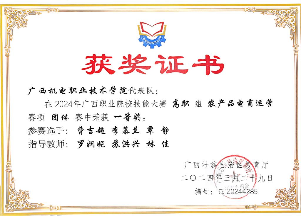 广西职业院校技能大赛农产品电商运营赛项一等奖