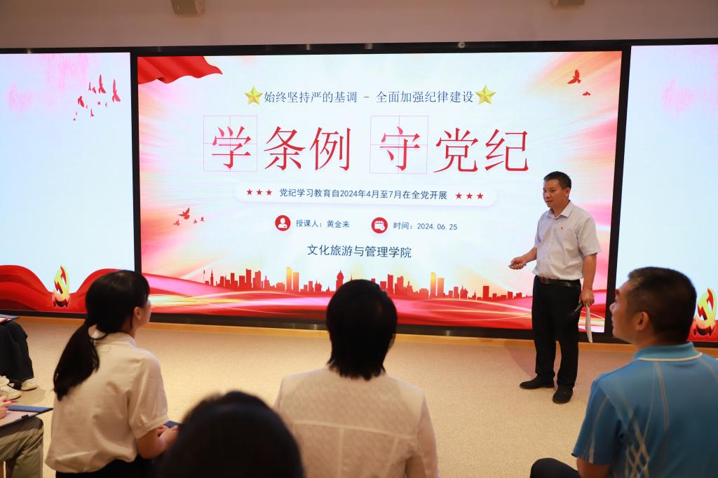 文化旅游与管理学院党委坚持以习近平新时代中国特色社会主义思想为指导,在学校党委的正确领导下,团结带领全院师生员工,深入学习贯彻党的二十大和二十届二中、三中全会精神及全国教育大会精神,认真贯彻落实习近平总书记关于教育的重要论述和对广西工作论述的重要要求,进一步深刻领悟“两个确立”的决定性意义,增强“四个意识”、坚定“四个自信”、做到“两个维护”。坚持以政治建设统领学院各项事业,坚决贯彻党的二十大报告对繁荣发展文化事业和文化产业作出重要部署“以文塑旅、以旅彰文”,不断探索党建与业务融合新模式,努力构建具有文旅学院特色的高水平党建工作体系,以高质量党建引领高质量发展,学院各项事业取得了显著发展与进步。