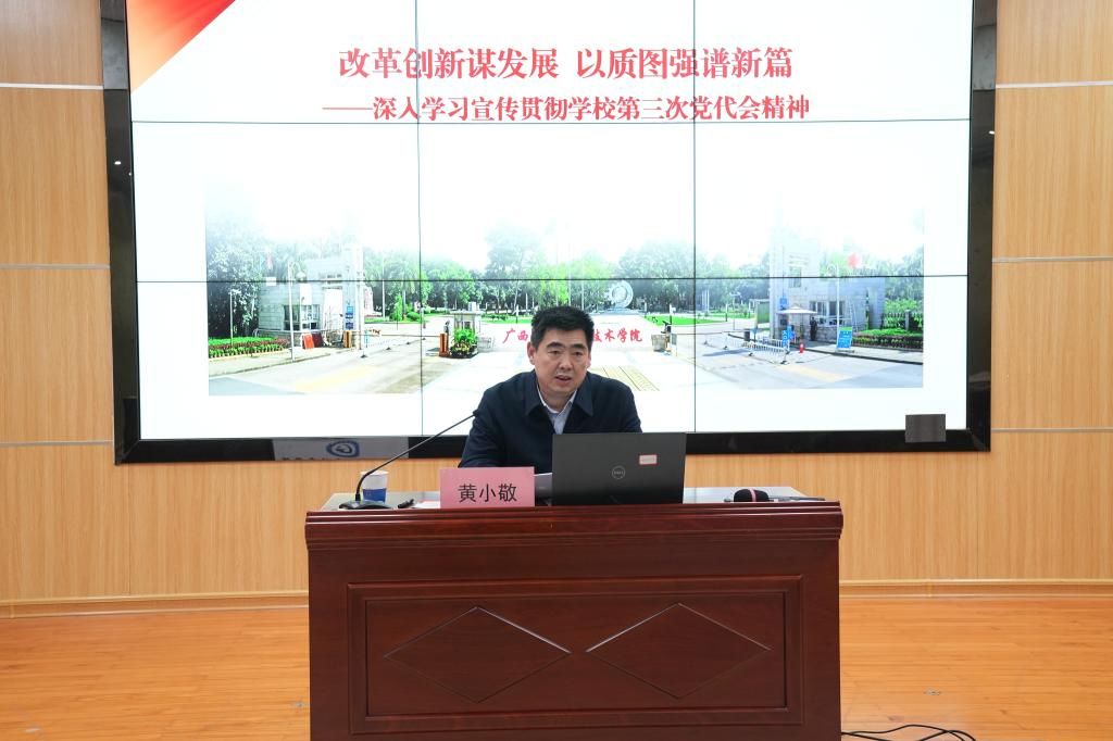 学校领导指出,学校第三次党代会是在全国上下深入贯彻落实党的二十届三中全会精神,全区上下全面贯彻落实习近平总书记对广西工作论述的重要要求,全校上下全面贯彻落实全国教育大会精神和自治区第十二次党代会及历次全会精神,以及全区教育大会精神之际,在以进一步全面深化改革奋力谱写中国式现代化广西篇章的重要时期,全力推动学校事业高质量发展迈上“建双高升职本”新起点的关键时刻召开的一次十分重要的会议,事关学校未来五年的改革发展,意义重大、影响深远。全体干部师生要深刻领会,准确把握学校“11159”发展战略,踔厉奋发、勇毅前行,在“建设广西领先、国内一流、国际知名高水平智能制造特色校”的新征途中彰显担当、铸就新绩。