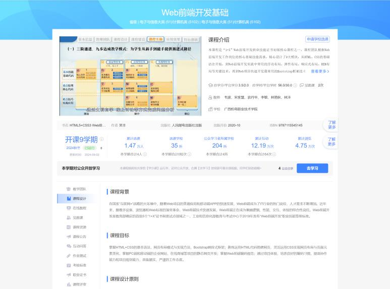 主持《Web前端开发基础》课程申报国家级在线精品课程