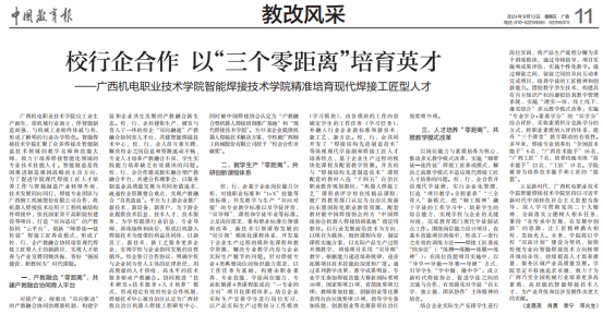 “职业教育必须与产业同频共振。”李宁深耕产教融合,推动与中船、柳工、汇川等头部企业共建订单班,筹备“中船-机电现场工程师学院”并推进中船现场工程师项目;带队赴广东调研,与臻尚美、友科等企业签订战略合作协议,开发典型生产实践案例融入教学,促成与玉柴集团共建制造业协同中心,与中船集团共建人形智能焊接机器人技术创新中心。他牵头完成10余个实验实训室升级改造,新增机器人焊接工作站、智能制造实训设备等24套,建成广西应急厅焊接与热切割特种作业考试示范基地,拓展校外实习基地2家,2024年学生岗位实习落实率达90.7%,为区域产业输送大批技术技能人才。
