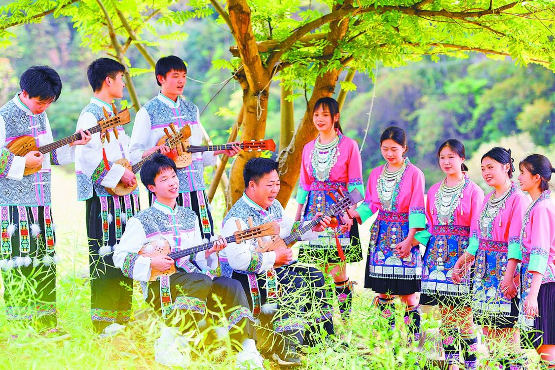 在龙胜各族自治县乐江镇江口村,侗族青年在练习对山歌。通讯员 潘志祥 黄同凯 摄