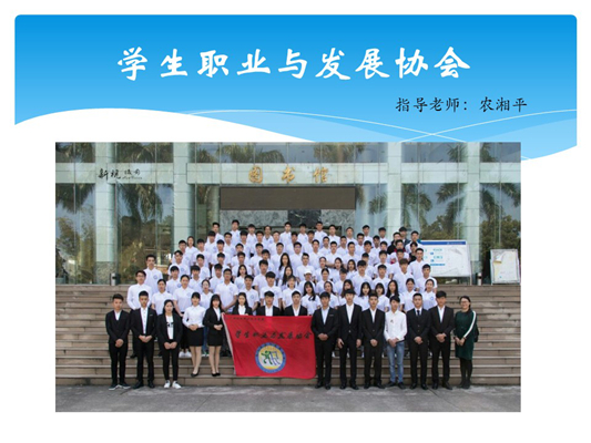 学生职业与发展协会是由我院正式成立的学生团体,由院团委和学生社团联合会直接领导,协会以关注当前大学生就业状况、提高同学们的职业规划意识、促使其有目标有计划科学地进行职业生涯规划、提高求职应聘能力为己任,努力做好学院就业指导中心、职业意识教育中心与同学们之间沟通的桥梁。