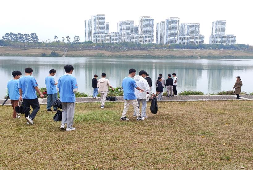 活动现场,师生们热情高涨,发扬“不怕脏,不怕累”的雷锋精神,配合默契,干劲十足,一同挥锹铲土、扶苗提树、培实新土。将求知西路大道、邕江运动公园道路沿线的垃圾认真清扫干净并种下桃李树苗。经过大家的辛勤劳作,一株株新种下的树苗傲然挺立,邕江运动公园的环境得到了很好改善,原本美丽的草地更焕发了盎然生机。