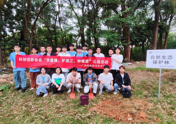 为落实习近平总书记第九次参加首都义务植树活动时作出重要指示精神和对深入开展学雷锋活动作出重要指示,增强广大师生保护环境的意识,万象城官网科技创新协会于2023年3月12日在学校的桃李路与求知西路大道和邕江运动公园开展了“学雷锋,护邕江,植树苗”公益活动。