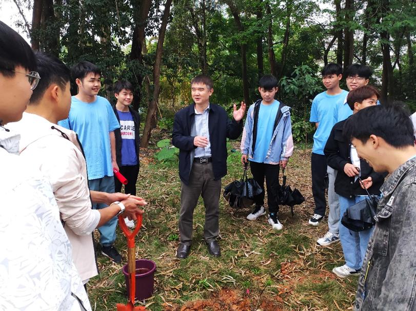 指导老师讲述了雷锋的故事、介绍了树木种植的流程