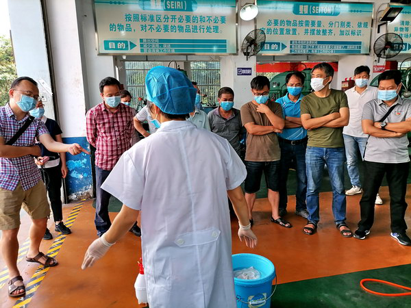 培训中,学院卫生所副所长陈碧燕等医务人员详细地讲解了新冠肺炎防控的基本知识、消毒的方式方法、消毒剂的配制、消毒人员的个人防护、消毒过程中的注意事项、规范的消毒操作流程等知识,并现场进行指导和演示,并就相关工作人员在消毒过程中遇到的实际问题及如何规范操作等进行了答疑解惑。