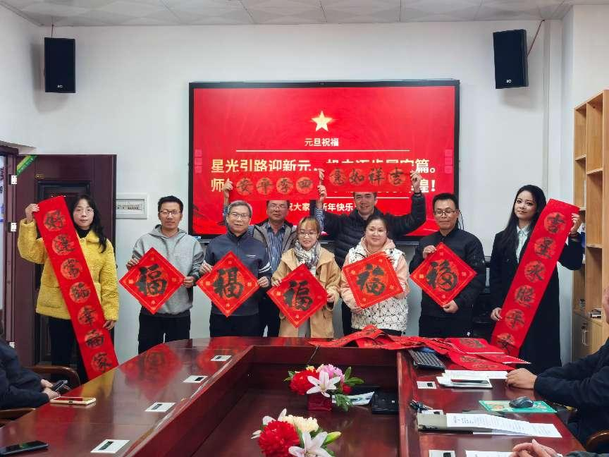 在会议热烈的气氛下,党员梁宁侃为每位同事赠送了亲手书写的春联,学院也以“星光引路迎新元,机电迈步展宏篇。师生共绘蓝图景,踔砺笃行再辉煌!”为全体教师和学校送上了新年祝福。