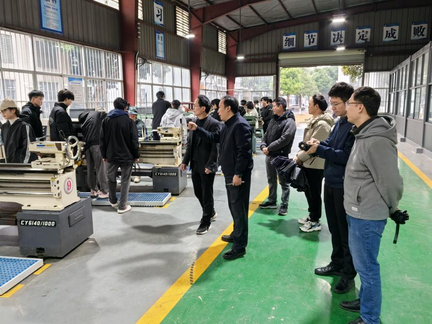 实习期间,广西民族大学物理与电子信息学院领导一行莅临我院指导工作,看望2024级学生金工实习情况。