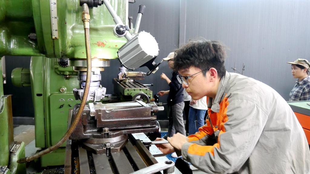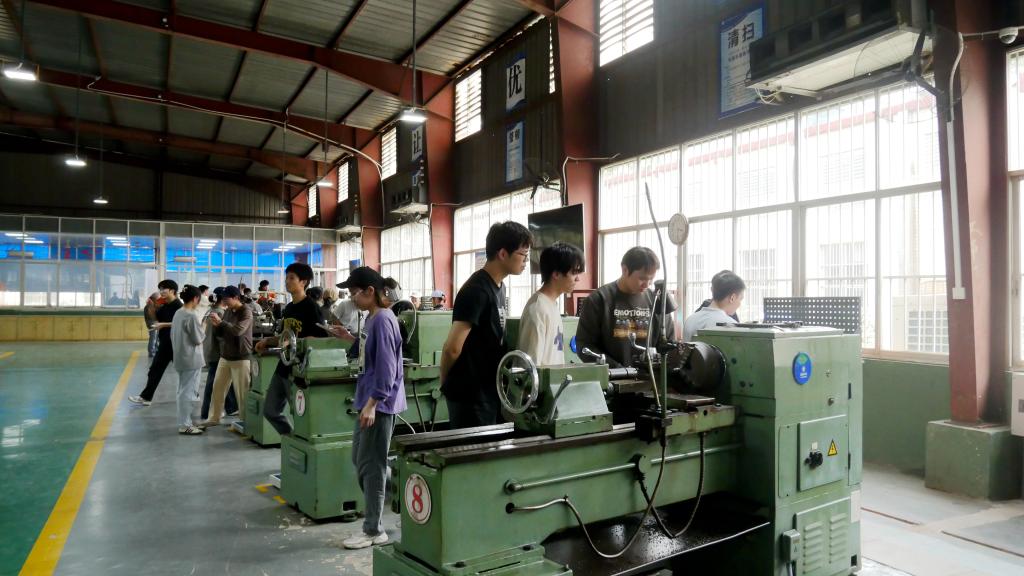 为了保障培训达到高质量的效果,工程训练学院充分发挥其深厚的教学底蕴与丰富的资源优势,精心为广西民族大学的学生们定制了一套极为全面且细致的培训方案。在机加工培训区域,车床、铣床、钻床等专业设备有序排列,散发着工业制造的独特魅力。培训之初,专业教师以严谨的态度详细讲解设备操作规范,每一个步骤都进行了精准演示,并着重强调安全注意事项。学生们全神贯注,认真聆听,随后便迫不及待地投入实践操作。在操作车床时,学生们小心翼翼地调整刀具位置,随着车床启动,工件飞速旋转,金属切削产生的耀眼火花瞬间四溅。他们在不断尝试中,逐渐掌握进刀、退刀的微妙技巧,深刻体会到零件加工过程中对精度把控的严苛要求,从而深入了解机械制造从原材料到精密零件的复杂流程。