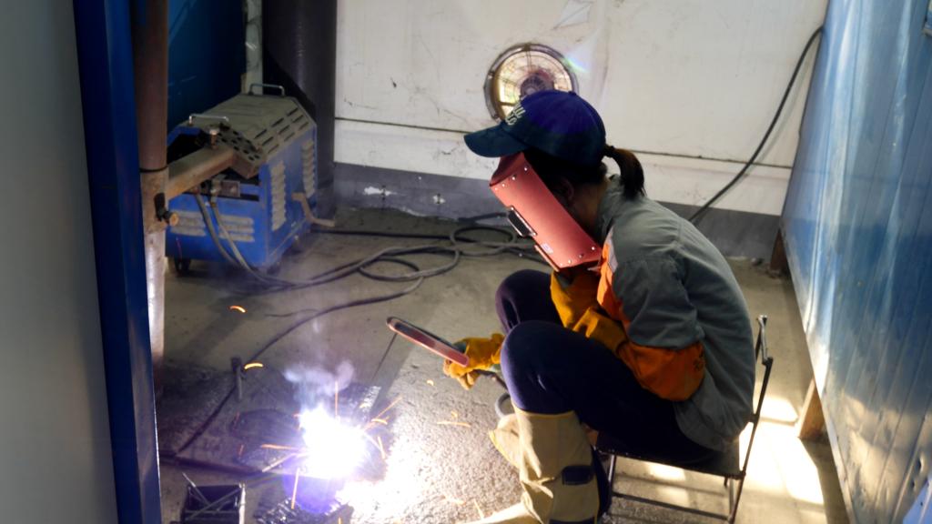 学生认真进行焊接操作