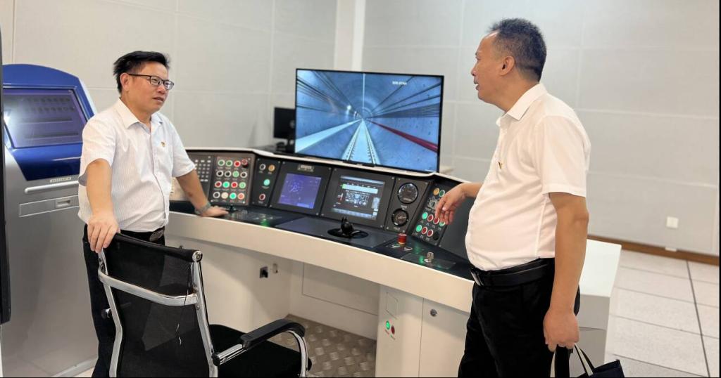 在公司负责人的引导下,党员们首先听取了关于公司运营现状、党组织架构、企业工匠文化、技术人才培养、技术创新及运维保障等方面的情况及取得的成果。接着,党员代表们走进地铁列车驾驶模拟操作系统,进入模拟仓置身感受地铁列车运行的场景,实地观摩地铁列车调度指挥、车辆检修维护等工作环节。企业技术骨干现场讲解了列车运行原理、应急处置流程等专业知识,党员教师结合教学实际提出技术疑问与合作设想,在沉浸式体验中实现了“理论与实践”“校园与企业”的双向互动。